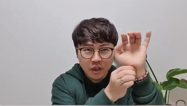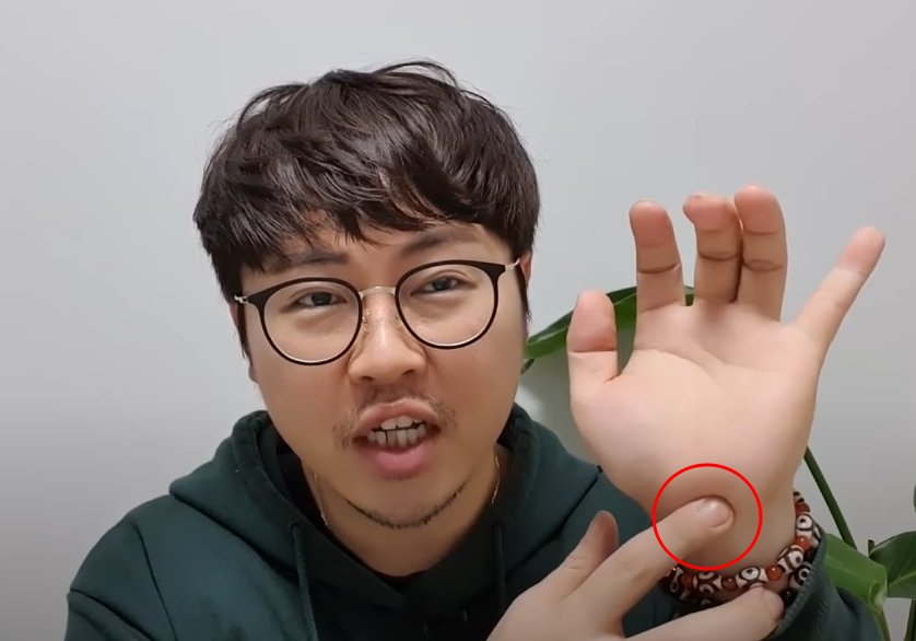 유튜브 '니들연구소' 자료 화면 그 위치는 자주 사용하는 손에 손바닥 면과 손목이 시작되는 중간입니다. 쉽게 찾는 방법은 손바닥이 끝나는 지점에 보시면 대부분 두 줄의 손금이 있습니다. 그 첫 번째 줄의 가운데를 누르신다고 생각하시면 됩니다. 해당 부분을 눌렀을 때 좀 아프거나 찌릿찌릿하시는 분들은 간이 살짝 안 좋다고 볼 수 있다고 합니다.